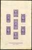 1899 gummed American Bank Note Co. sample proof sheet printed in lilac, approx 135 x 210mm bearing seven stamp impressions which include the finished master dies for the 1869 small and large revenue stamps, also fine examples of 200r, 400r and 600r unissued designs and finally two impressions of ABNC sample 5c ‘stamps’, the sheet with three American Bank Note Co New York imprints, some glue stains at edge of item not detracting from an overall lovely item.