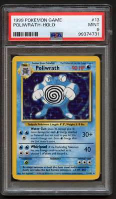 A PSA Mint 9 is a superb condition card that exhibits only one of the following minor flaws: a very slight wax stain on reverse, a minor printing imperfection or slightly off white borders. Centering must be approximately 60/40 or better on the front and 90/10 or better on the reverse.