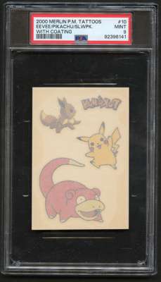 PSA 9 Pikachu/Eevee/Slowpoke Merlin Pokémon Tattoos - 2000