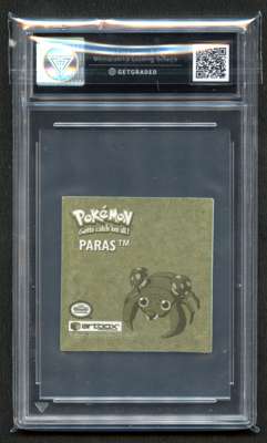 Get Graded 9 Paras R12 Artbox Series 1 Sticker, a vintage sticker featuring Paras from the original Artbox Series 1 collection. Graded 9 by Get Graded, it is in mint condition with clean edges and excellent print quality. A great addition for collectors of early Pokémon merchandise.