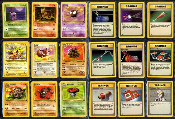 This lot contains a childhood collection of Base Set, Jungle and Fossil cards. This collection features a Gengar 1st Edition Fossil Holo Most cards are in MP-LP conditions, with few being better conditions and a few being worse conditions. All Holo conditions will be listed below.