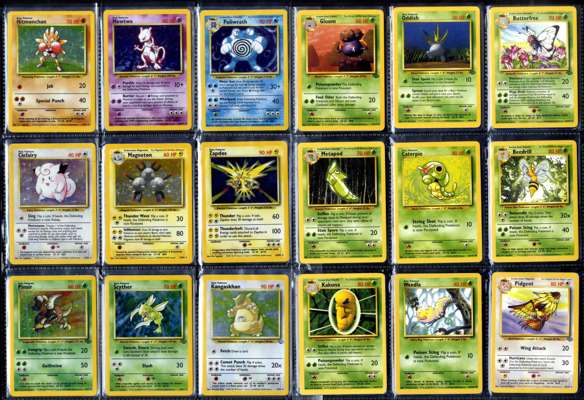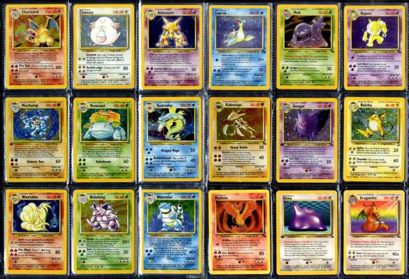 Alakazam (MP)Blastoise (LP)Chansey (HP)Charizard (MP)Clefairy (HP)Gyarados (Damaged)Hitmonchan (MP)Machamp (MP)Magneton (MP)Mewtwo (LP)Nidoking (MP)Ninetales (MP)Poliwrath (MP)Venusaur (NM)Zapdos (MP)Jungle: