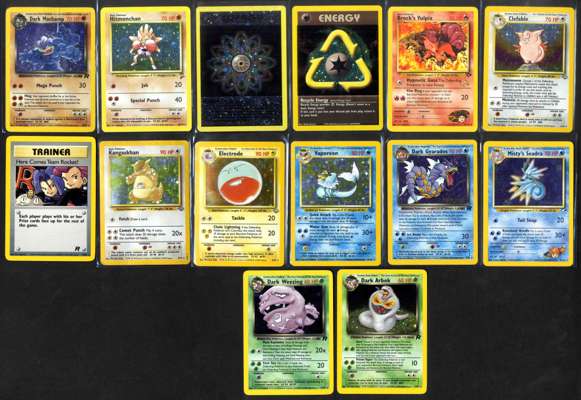Clefable (Jungle)Kangaskhan (Jungle) [Damaged]Electrode (Jungle)Vaporeon (Jungle)Misty's Seadra (Prerelease)Dark Gyarados (Prerelease)Dark Weezing (Team Rocket)Dark Arbok (Team Rocket)Here Comes Team Rocket! (Team Rocket)Dark Machamp (Damaged)Hitmonchan (Base Set 2) [Sun Damaged]Brock's Vulpix (W Stamp) [MP]Energise Your Deck Rainbow EnergyEnergise Your Deck Recycle Energy