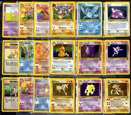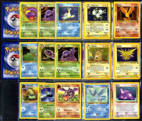 This lot contains a Complete Fossil Set from 1999 in Unlimited print. All cards are in LP-NM conditions. This lot is presented and stored in 9-pocket binder pages.