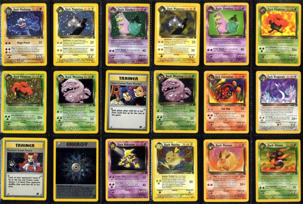 Dark Alakazam - NMDark Arbok - LPDark Blastoise - LPDark Charizard - LPDark Dragonite - LPDark Dugtrio - NMDark Golbat - NMDark Gyarados - NMDark Hypno - NMDark Machamp - NMDark Magneton - NMDark Slowbro - NMDark Vileplume - MPDark Weezing - LPHere Comes Team Rocket! - NMRocket's Sneak Attack - LPRainbow Energy - DamagedDark Raichu - LP