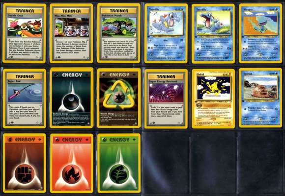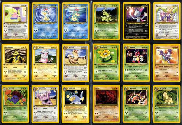 This lot contains a Partially Complete Neo Genesis set in 1st Edition print. IT also contains some duplicate cards, but not many. All cards are in LP-NM conditions with the only Holo in the set, Jumpluff, being in NM condition.