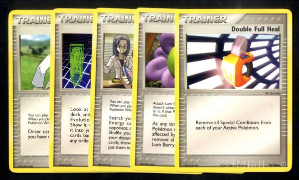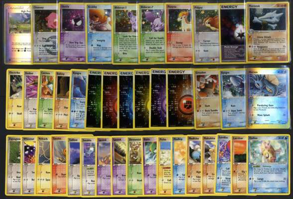 5 from EX Emerald - Cacnea, Duskull, Larvitar, Makuhita, Meditite.10 from EX Team Aqua vs. Team Magma - Team Magma's Houndour (35), Team Magma's Baltoy (32), Team Aqua's Lanturn (28),Team Aqua's Electrike (27), Team Aqua'a Mightyena (30), Team Magma's Mightyena (37), Team Aqua's Corphish (26), Team Magma Conspirator, Team Aqua Conspirator, Maxie.2 from EX Dragon - High Pressure System, Horsea.8 from EX Fire Red and Leaf Green - Chansey, Gastly, Krabby, Nidoran F, Nidoran M, Pidgey, Ponyta, Multi Energy.