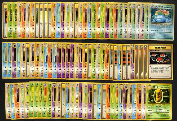 This lot contains a bulk lot of 144 Japanese Vintage cards from Base Set to Gym Challenge. Please be aware when bidding that this set contains duplicate cards. The holos have some standard warping to them that is common for cards this age.
