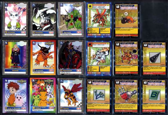 This lot contains 60 cards from the Digimon TCG that released in 1999. Cards from Series 1 and the Animated Series 1. All cards are in LP-NM conditions. There are duplicate cards in this collection. This lot is presented and stored in 9-pocket binder pages.