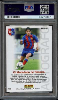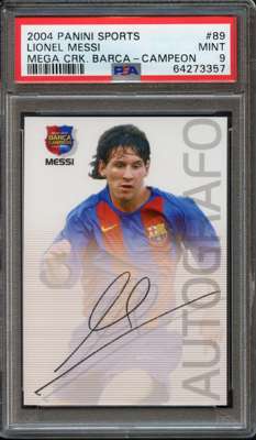 2004 Panini Sports Lionel Messi #89 Mega Cracks Barca Campeon, graded a 9 by PSA.