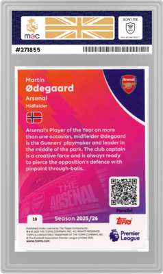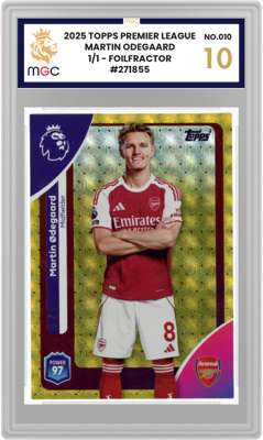 Topps Premier League Martin Odegaard Foilfractor, one of one, graded a 10 by MGC.