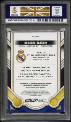 2025 Topps Palatial RM Ronaldo Nazario Black Diamond Auto, numbered 1/10 and graded a 10 by MGC.