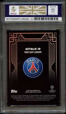 2022 Topps Deco Neymar Jr Pink Autograph, numbered 3/5 and graded a 9 by MGC.