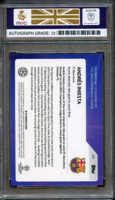2022 Topps UCL 30 Seasons Andres Iniesta Blue Autograph, numbered 15/49, graded a 10 by MGC.