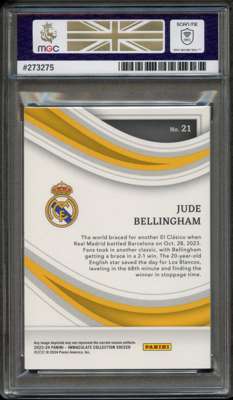 2024 Panini Immaculate Jude Bellingham Immaculate Images, numbered 20/49 and graded a 9 by MGC.
