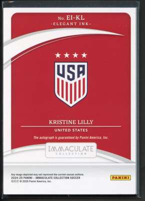 A Panini Immaculate Kristine Lilly Auto from 2024-2025 in Near Mint condition (No. EI-KL). 1 of 1.