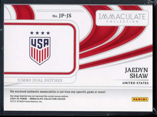 2024-2025 Panini Immaculate Jaedyn Shaw Dual Patch 4/10 No. JP-JS.