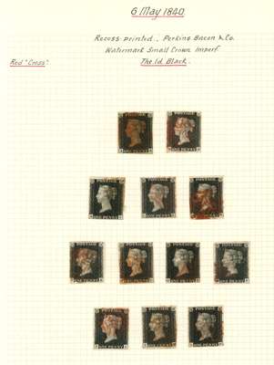1840 1d black, unplated range of twelve, up to four margins, cancelled by mostly neat red MC, generally fine condition. SG 2 (12)