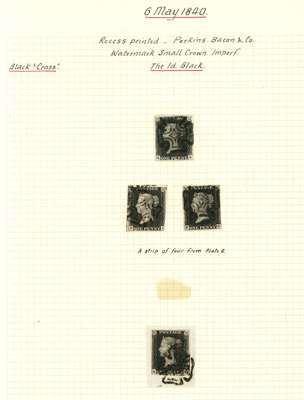 1840 plated and unplated range of 1d blacks including, eight used singles (upto four margins) all cancelled by black...