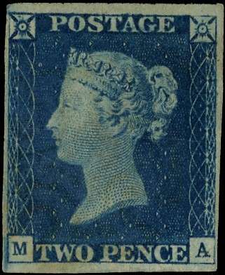 1840 2d blue Plate 1 (MA) four clear to good margins, part o.g. a trifle toned at foot, still a very collectable example, scarce. SG 5 £38,000