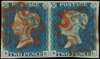 1840 2d blue, plate 1, horizontal pair (BK-BL), four good margins and cancelled by crisp, red MCs, rare in such fine condition, fine used SG 5