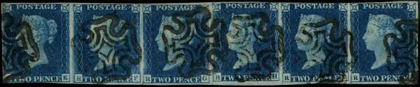 Great Britain 1840 2d Deep blue horizontal strip of six...