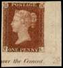 1841 1d Red brown Pl.29. Superb unused bottom right hand corner marginal imperforate imprimatur lettered TL, showing part sheet inscription and plate number "29". Rare. Ex Clark (1946).