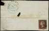1841 1d red-brown Plate 77b (BA) four good margins, showing variety B BLANK CORRECTED, used on large piece, tied by 134 numeral, with Bristol and Birmingham markings, scarce. SG 8var, BS66b