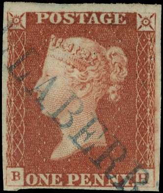 SCOTS LOCAL: 1841 1d red-brown (BH) four clear to good margins bearing Ollaberry, Shetland Islands, type I straight line handstamp in blue, very fine example of this rare Scots cancel. SG 8