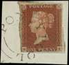 1841 1d red-brown (MK) four touching to good margins, used on small piece tied by near complete...
