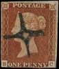 1841 1d red-brown (BC) four touching to clear margins, bearing Inspectors Cancellation, used in the London Chief Office on a ''franked'' letter, to denote that the letter was charged to the sender and addressee of the letter for having no 'franking' privilege, scarce. SG 8var