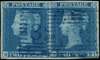 1840 2d blue plate 3, four margin horizontal pair (NH-NI) neatly cancelled by blue Tongue “328” numeral. SG 2/Spec. ES11wb