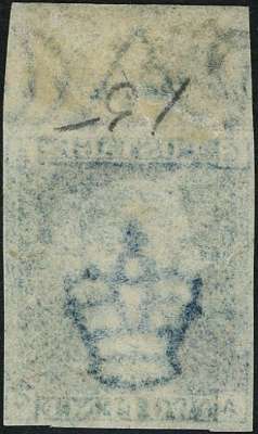 1858-69 2d blue Plate 15 (AG) imperforate imprimatur, top marginal with part...