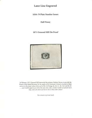 1871 ½d Ormond Hill die proof on this white paper with corner squares blank, superb...