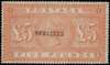 1867-83 £5 orange, white paper overprinted “SPECIMEN”, fresh appearance, faults, regummed and horizontal crease. Unused SG 137s