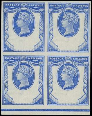 Great Britain 1894 1½d Reply paid essay. Superb unmounted o.g. bottom marginal imperforate block of...