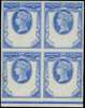 Great Britain 1894 1½d Reply paid essay, lower imperforate block of four of the head plate printed in blue on Crown watermarked paper with continuous rule in sheet margin. fine o.g. Scarce multiple