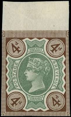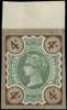 1887 4d green and brown, top marginal imperforate imprimatur, fine o.g. scarce. SG 205a,var