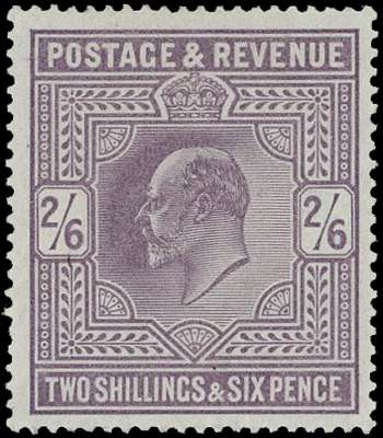 1902-10 2/6d pale dull purple, variety, WMK INVERTED brilliant o.g. one shortish perfs, still a fine and scarce stamp with this variety. SG 261wi, £7500
