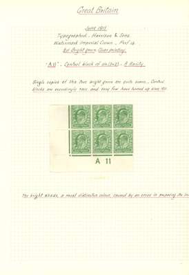 1911 ½d bright-green (fine impression) 'A 11' control block of six, large part o.g; with two stamps unmounted, a rare item. SG 271, Spec.M3(6)