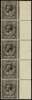 1912-24 9d agate, vertical strip of five with intact selvage at right, showing complete POSTAGE WATERMARK