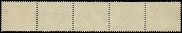 1912-24 1/- bistre vertical strip of five showing full POSTAGE WATERMARK