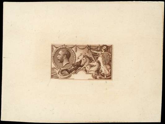 1913 Seahorse, Master Die Proof (Stage 5), in brown on thick card