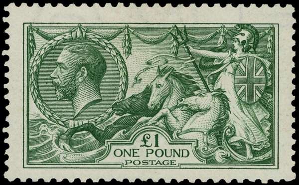 GB: 1913 £1 green, good colour, fine unused o.g. SG 403...