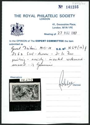 1915 2/6d 'seal-brown' variety WATERMARK INVERTED