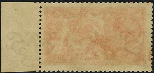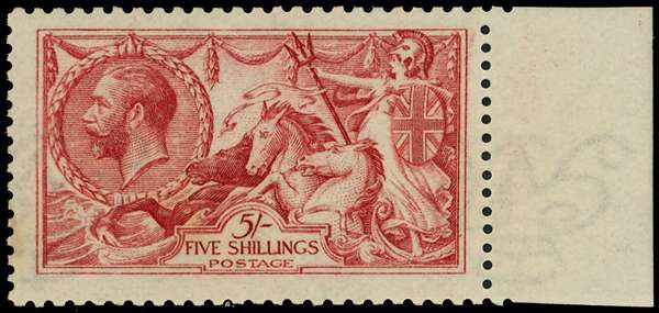 1915 5/- bright carmine, right hand marginal, variety WATERMARK INVERTED