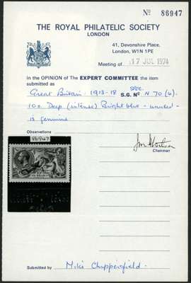1913 10s deep (intense) bright blue, RPS certificate
