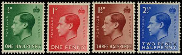 1936 KEVIII Definitive Essays Type A set of four in issued colours