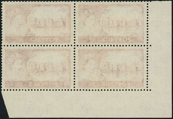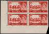 1963 Bradbury Wilkinson 5/- scarlet-vermillion , block of four, variety WATERMARK INVERTED.