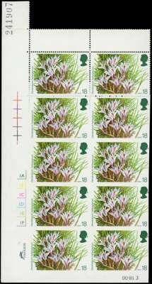 Great Britain 1993 Orchids 18p imperf block of six plus partial imperf cylinder block SG...